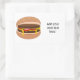 Add a slogan or name to create a personalised gift with a hamburger theme. Image shows a double cheeseburger with melted cheese, tomato rings and gherkin.