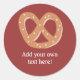 Add a slogan or name to create a personalised gift with a pretzel theme. Image shows a German style pretzel knot of bread (or could be an American crunchy pretzel snack) studded with salt crystals.