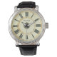 Customise this vintage watch face design with leather band. This is a stylish watch with roman numerals and classic styling. Add your initials or other text to personalise for you or as a gift for someone special.