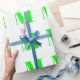 Customise w/Initial Letter, neon green white gift Wrapping Paper