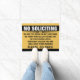 Send those pesky door-knockers away with a chuckle with a custom "No Soliciting" door mat for your home! Text reads: No Soliciting - We are too broke to buy anything - We know who we are voting for - We Have found Jesus - Seriously: Unless you are __fill_in_the_blanks__ - Please, go away! Replace our text (selling thin mints) with your own text. Customise the background colour to your choice.