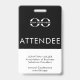Elevate your conference experience with this customisable attendee name badge. Perfect for trade associations, this badge features ample space for your attendee's name, association name, and conference title and date or text of your choice. The black and white design is sleek and modern, with a customisable logo at the top. Make a great impression with this professional and personalised badge.