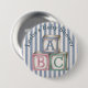 Customise this cute button with the name mum to be. Fun button has a ABC baby blocks in pink, blue, and green. The background is a blue stripe design. Great baby shower favours for all your guests. graphicsandbits/kristiw
