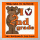 A cute brown bear, apple with a heart, text that reads "I (heart) 2nd Grade", and areas you can customise with a welcome and your name on a cute classroom poster perfect for 2nd grade teachers!