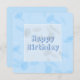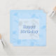 The artwork is of elegant confetti art, presented in light pastel blue and lavender mist, along with customisable typography that currently reads "Happy Birthday" for wish personalisation in light cornflower blue font colour. It is an elegant and fun design for young and old alike!