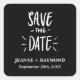 Introduce your wedding in style with our Customised Black Typography Wedding Save the Date Square Sticker. Featuring sleek, modern typography on a classic black background, this sticker adds a touch of elegance and sophistication to your wedding announcements. Perfect for sealing envelopes or enhancing wedding favours, its unique square shape sets it apart. Personalise it to make a lasting impression on your guests, ensuring they remember your special day with this chic and memorable detail.
