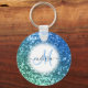 Easily personalise this beautiful sparkly blue faux glitter keychain with your custom handwritten script monogram and name.