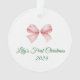Commemorate the holiday with a personalised ornament. Featuring a pink bow design, the ornament adds a sweet touch to any tree.
