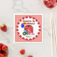 Personalised Farm 3rd Birthday paper napkins, cute and colourful, great for the farm or farm animal theme birthday celebration! These farm theme 3rd birthday paper napkins feature an outside decorative ring of red and a red and white chequered background with a red hay barn, pig, chicken, blue farm tractor, birthday balloons, text that reads Celebrating My 3rd Birthday, and an area you can add the birthday child's name! We have the matching farm 3rd birthday paper plates, T-shirts, and more!