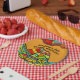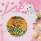 If you're having a fiesta birthday celebration, whether it's for a child or an adult this fiesta birthday design is a great fit! Featuring bright colours, hot peppers, sombreros, and maracas, this fiesta paper plate design has a gold background and an area you can easily customise with your own text whether it's a birthday party of another type of fiesta celebration!