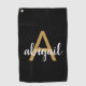 Modern Monogrammed Black and Girly Gold Trendy Stylish Elegant Modern Golf Towel. This Golf Club Towel can be customised to include your initial and first name and is a perfect birthday or bachelorette party gift. Please contact the designer for matching items.