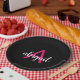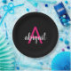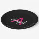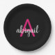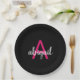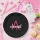 Customised Hot Pink Black Stylish Monogram Name Paper Plate