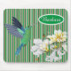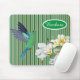 A Beautiful Green Striped Mouse Pad Design With A Colourful Green Hummingbird And White Summer Flowers You Can Add Name