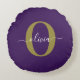 Customised Monogram Script Name Purple White Gold Round Cushion