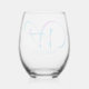 Customised Monogram "W" Name Abstract Spring Blue Stemless Wine Glass
