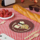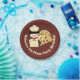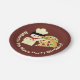 Pizza Party Birthday paper plates feature a chef in chef's hat holding a pizza and other pizza on a brown background with an area you can customise with your pizza party information, a thank you message to your guests, or whatever you want it to say!