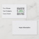 This is a fully customisable business card that uses QR Scan Codes. QR codes are like big bar codes with white and black dot patterns. They allow you to encode text, a URL, a phone number or SMS on stationery and allow anyone to read the code and display the content on their mobile phone with a QR Scan code facility (Many makes of mobile phones can now read the codes with an application and their built-in camera).