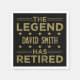 A funny retirement design that says 'the legend has retired', in stylish black and gold. Personalise it by adding the retiree's name.