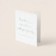 This personalised, elegant silver foil sympathy greeting card design features the message "Our thoughts are with you and your family…" on the front, along with a personalised message on the inside. It could perhaps be used to offer sympathy to the relatives of somebody who has recently passed on.