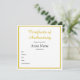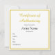 Customised Square Gold Certificate of Authenticity Card