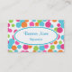 Vibrant polka dots decorate this fun business card. Customise this business card to suit your needs. Add or delete information, change the font style, etc...The design is from original art. Use this business card for a spa, salon, hair salon, makeup artist, florist, small business, preschool, school, babysitting, candy, ice cream, daycare, child care, home decor, event planner, bakery, boutique, fashion, clothing, etc...