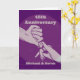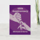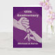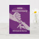 This design has a husband and wife with their pinky fingers locked together. This romantic couple are holding hands to celebrate their wedding anniversary. You can customise this pink and purple design with your own wedding anniversary date and names.