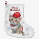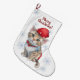 A Christmas stocking is a festive sock-shaped bag that people hang up during the holiday season, usually by the fireplace or at the foot of their bed. It's traditionally filled with small gifts, candies, and treats on Christmas Eve. The idea is that Santa Claus comes and fills the stockings with goodies for everyone to enjoy on Christmas morning. They come in all sorts of designs, colors, and sizes, often personalized with names or decorated with holiday themes like snowflakes, reindeer, or Santa himself. It's a fun and charming tradition that adds a little extra magic to Christmas!