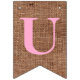 This customizable swallowtail CONGRATULATIONS! party bunting has a simulated brown burlap look background on it with pastel lettering in yellow, blue, green, and pink, making it perfect for a baby shower or gender reveal shower. Use the blue edit design to enter the design tool area to change the font, font colors, etc.