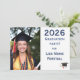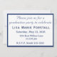 Design front features the photo you supply displayed at left against a white background. Your text is featured at right in a navy-blue text.