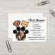 Ensure your pet sitting business stands out with this charming and professional customizable business card. Designed for animal lovers, this card features adorable illustrations of a dog and cat, alongside a unique paw print photo placeholder to showcase your personal touch. The clean layout clearly lists your services—including dog walking, cat sitting, and home visits—making it easy for pet owners to see exactly how you can help. The back of the card features a heartwarming slogan and a paw print with a heart, reinforcing your commitment to providing "Loving Care When You’re Not There.