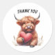 A very cute design of a baby highland cow (calf) holding a heart. It simply says "Thank you", but the text is customizable so you may prefer another sentiment such as "sending love" or even a name, being a sheet of 20 you can choose how to use them, on a gift, a card, or an envelope are just a few ideas. Depending on the text you choose certainly gives you plenty of options, or buy another pack and change the text so you can use them on different products, perhaps a name would suit on a laptop or drink bottle.