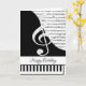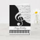 cute piano with sheet music, edit greeting, and your own accent piece (floral, etc.)