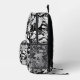 Fresh backpack design features a monogrammed tropical leaf pattern in black and white with grey accents. The flowers repeat on the front, top, and sides. A stylish template with an accent on the front pocket in black and white allows for customisation with one or two initials. Message me via Zazzle if you want to change another colour.
