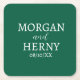 CUSTOMIZED NAME STYLISH MODERN DARK GREEN WEDDING SQUARE PAPER COASTER