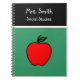 An apple decorates this professional looking, retro style notebook. Customize this notebook by changing the name and subject to suit your needs. Use this apple notebook for school, class, lesson plans, ideas, substitute teacher notes, home, office, notes, the classroom, etc... This notebook is great for teachers, students, administrators, men, women, etc...The design is from original art.