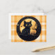 Get ready to share some feline fun and Halloween magic with our "Whimsical Cat's Night Out" postcard. This adorable creation captures the essence of Halloween with a scene that's both charming and enchanting: an adorable black cat adorned in a black and orange pattern, set against a backdrop of trees and stars. The postcard is framed by a seasonal orange and white plaid background, making it the perfect way to send warm wishes and delightful Halloween greetings to your cherished family and friends.