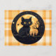 Imagine a moonlit night filled with wonder and whimsy – our postcard transports you to this magical moment. The whimsical black cat, with its playful black and orange pattern, captures the spirit of Halloween's cute and charming side.