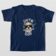 The t-shirt feels and looks great quality, a good thick cotton. It will be a little big for my son, but that means he will be able to wear it and not out grow it too soon. The print was as described on the order when personalised. True size, shape and colour T-shirt- thanks.