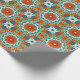 A pattern crated from cut paper shapes, like the Japanese art of paper-cutting known as kirigami. The lovely colours include a blue-green or turquoise, classic blue, a muted orange and a rust shade.