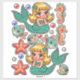 Cute 1950s style retro Mermaids, fish, seahorse sealife fantasy art fairytale fantasy art stickers sheet
