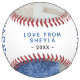 Cute 1st Father`s Day Script 2 Photo Collage Softball. Cute design for the new dad. Trendy script Happy Father`s Day, message with name and year. Add 2 favourite photos and make a sweet gift for a new dad for Father`s Day.