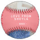 Cute 1st Father`s Day Pink Script 2 Photo Collage Softball. Cute design for the new dad. Trendy script Happy Father`s Day, message with name and year. Add 2 favourite photos and make a sweet gift for a new dad for Father`s Day.