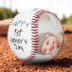 Cute 1st Father`s Day Script White 2 Photo Collage Baseball. Cute design for the new dad. Trendy script Happy Father`s Day, message with name and year is on white background. Add your 2 favourite photos into the template and make a sweet and personal gift for a dad or new dad for Father`s Day.
