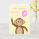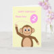 Add a name: This cute second birthday card is ready for you to personalize with the birthday child's name. It features a cheeky monkey waving a pink birthday balloon on a soft cream background. There is a further birthday balloon inside.