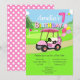 Cute 7th Birthday Polka Dot Pink Girly Golf Invitation