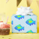 Cute 8 bit pixel art blue and green fish wrapping paper