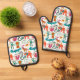 Cute Abstract Animals Kids Pattern Oven Mitt & Pot Holder Set