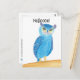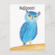 Cute blue and purple abstract owl is printed on custom postcards. The text above the owl says, Helloooo! The owl has a light blue body and purple and blue feathers, and purple ears. This is bound to bring some smiles. Thank you for shopping at CherylsArt on Zazzle.