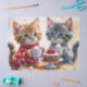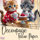 Tissue paper perfect for gift wrapping or decoupage with an illustration of two cute and adorable kittens drinking hot cocoa with marshmallows and eating raspberry cake. The blue eyed kittens wear sweaters decorated with hearts.