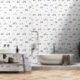 Little ones will delight in the soft natural theme with hand painted watercolor clouds, stars, trucks, tractors and aeroplanes on their wall. This wall paper will accent a playroom or nursery with a soft neutral ambiance and match with other decor items easily.